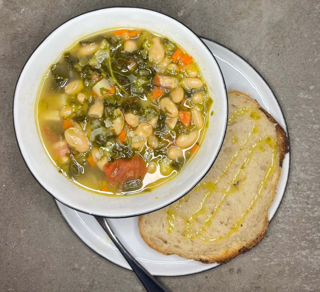 I have three meals prepped for quick eating: Tuscan White Bean Soup, Hearty Kale and Pancetta Bean Soup, and Venison Chili.